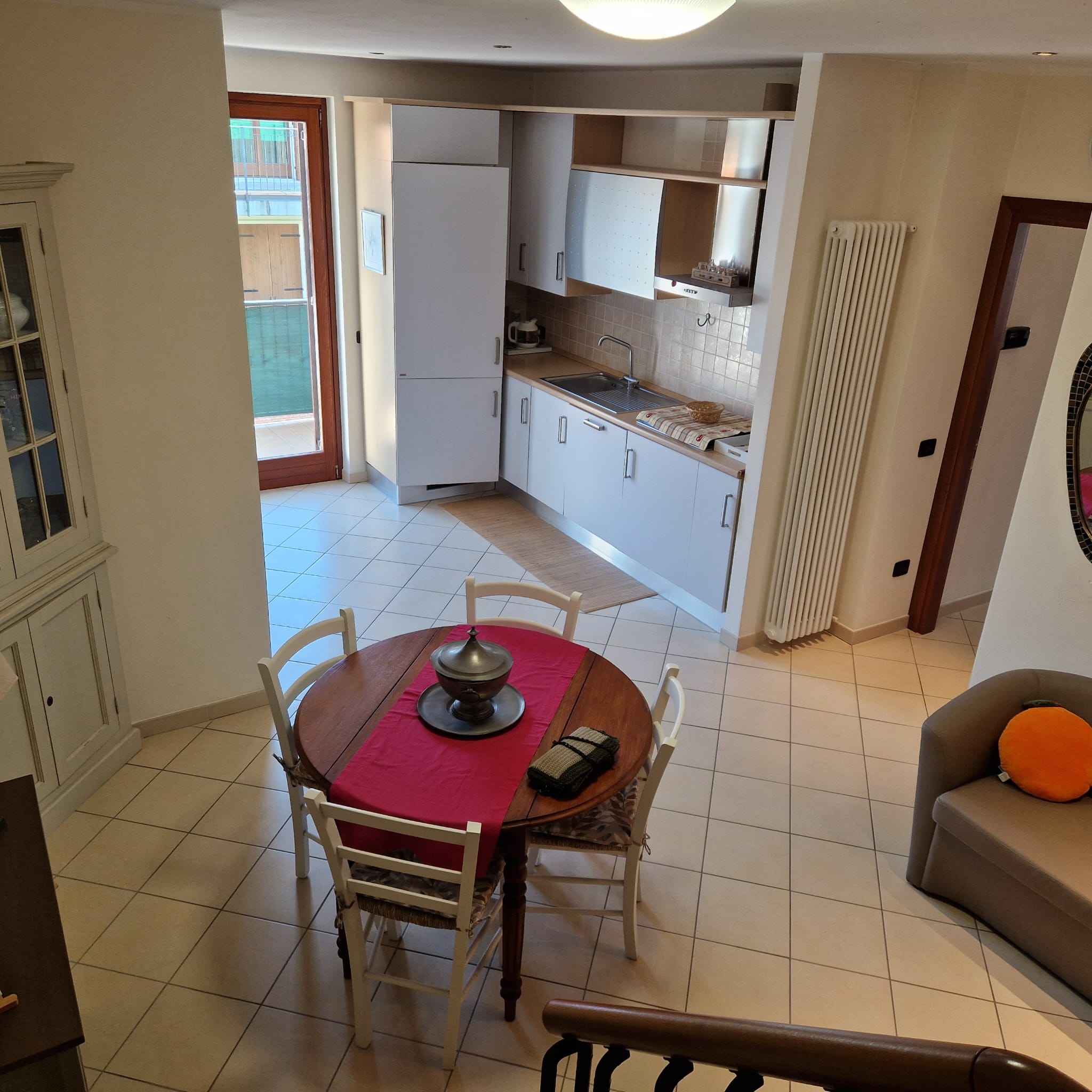 CAVAION VERONESE: in zona centrale comoda ai servizi, proponiamo in vendita elegante appartamento in recente contesto residenziale. L'immobile sito al primo piano, in posizione angolare, è disposto su due livelli. Entrando ci accoglie una luminosa zona giorno con angolo cottura e balcone coperto; nella zona notte abbiamo la camera matrimoniale con balcone, cameretta ed ampio bagno finestrato con doccia. Salendo al piano superiore, nella parte mansardata con un'altezza di oltre tre metri, si accede ad un locale attualmente destinato a salotto con un soleggiato balcone coperto, ad un'ulteriore zona hobby che può essere adibita a terza camera e ad un bagno lavanderia . Nell'interrato completa l'immobile un comodo garage singolo. Zona residenziale tranquilla ed elegante. C.E. "D"